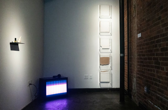audio, backlit film on lightboxes, ephemera in signage display, videos
